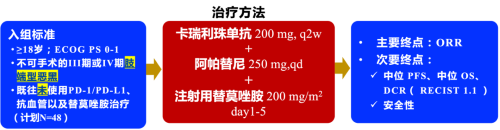 在黑色素瘤领域,郭军教授团队开展的卡瑞利珠单抗联合阿帕替尼(“双艾”方案)联合注射用替莫唑胺方案(CAM/APA/TMZ)一线治疗晚期肢端黑色素瘤的单中心、单臂Ⅱ期研究(NCT04397770)获选口头报告,研究方案如下: