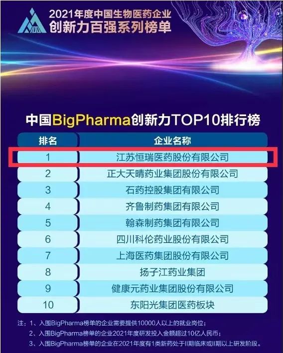 9月16日,由米内网主办的“2021年度中国生物医药企业创新力百强系列榜单”发布会在线上举办。豪门国际医药继去年登顶“中国BigPharma企业创新力TOP10排行榜”后,今年再次名列该榜单首位。