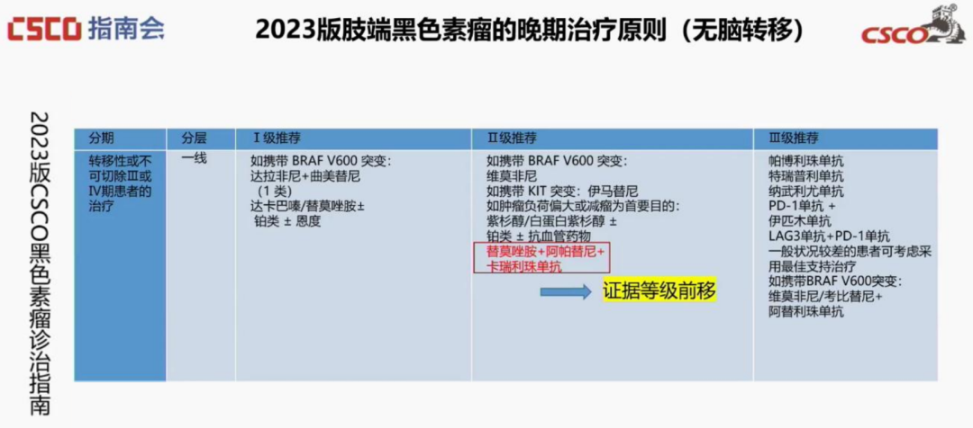 CAP-03研究凭借其创新性和令人惊喜的疗效,成功入选2022 ASCO口头报告环节并于今年在顶级学术期刊《JAMA Oncology》全文发表,卡瑞利珠单抗联合阿帕替尼和替莫唑胺的三联方案也成功纳入2023版《CSCO黑色素瘤诊疗指南》,获一线治疗晚期肢端恶性黑色素瘤Ⅱ级推荐。
