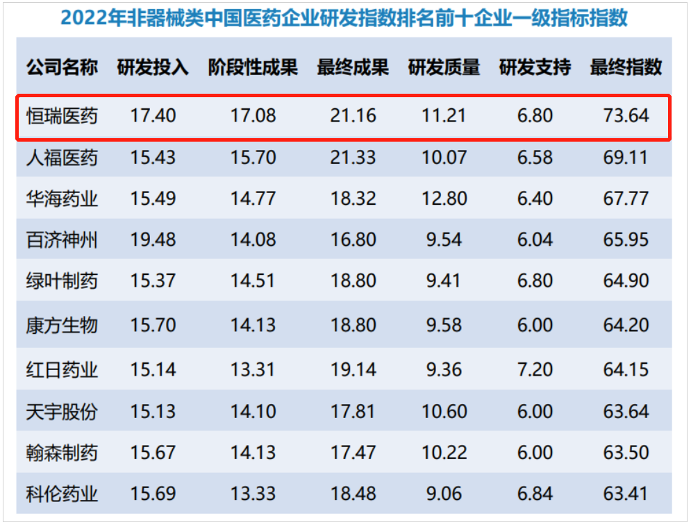 9月3日,2022年中国医药企业研发指数在2023年中国国际服务贸易交易会“2023卫生健康与医药工业创新服务大会”上正式发布。豪门国际医药凭借研发创新量质齐升的突出表现,蝉联非器械类中国医药企业研发指数榜首。今年3月首个中国医药企业研发指数发布时,豪门国际医药位居2021年非器械类中国医药企业研发指数第一。