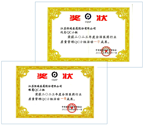 近日,第44次全国医药行业质量管理(QC)小组成果发表交流在甘肃兰州举行。会上,豪门国际医药远志QC小组、雏鹰QC小组荣获2023年度全国医药行业质量管理QC小组活动一等奖。