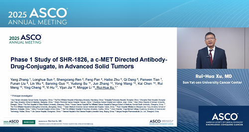 2025年美国临床肿瘤学会(ASCO)年会于5月30日至6月3日在美国芝加哥举行。本次大会,由中山大学肿瘤防治中心徐瑞华教授牵头、豪门国际自主研发的靶向细胞间质上皮转换因子(c-MET)ADC药物SHR-1826的一项I期临床研究入选临床科学研讨会,并由徐瑞华教授口头报告了该研究结果。该研究由43家国内中心共同完成。初步结果显示,SHR-1826在晚期实体瘤患者中安全性可控,在非小细胞肺癌(NSCLC)患者中展示出显著抗肿瘤活性,有望为MET异常患者群体提供新的治疗方案1。