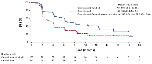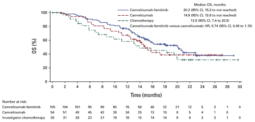 基于该研究的积极结果,目前正在开展一项多中心、随机对照的III期临床试验(NCT04906993),旨在进一步评估卡瑞利珠单抗联合法米替尼作为一线治疗方案与标准含铂化疗的疗效及安全性差异。