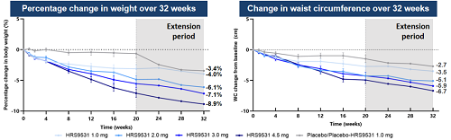 [3] Zhao J, et al. LBA 66 Efficacy and safety of HRS9531, a novel dual GLP-1/GIP receptor agonist, in patients with type 2 diabetes mellitus (T2DM): a phase 2 trial. Presented at EASD 2024.