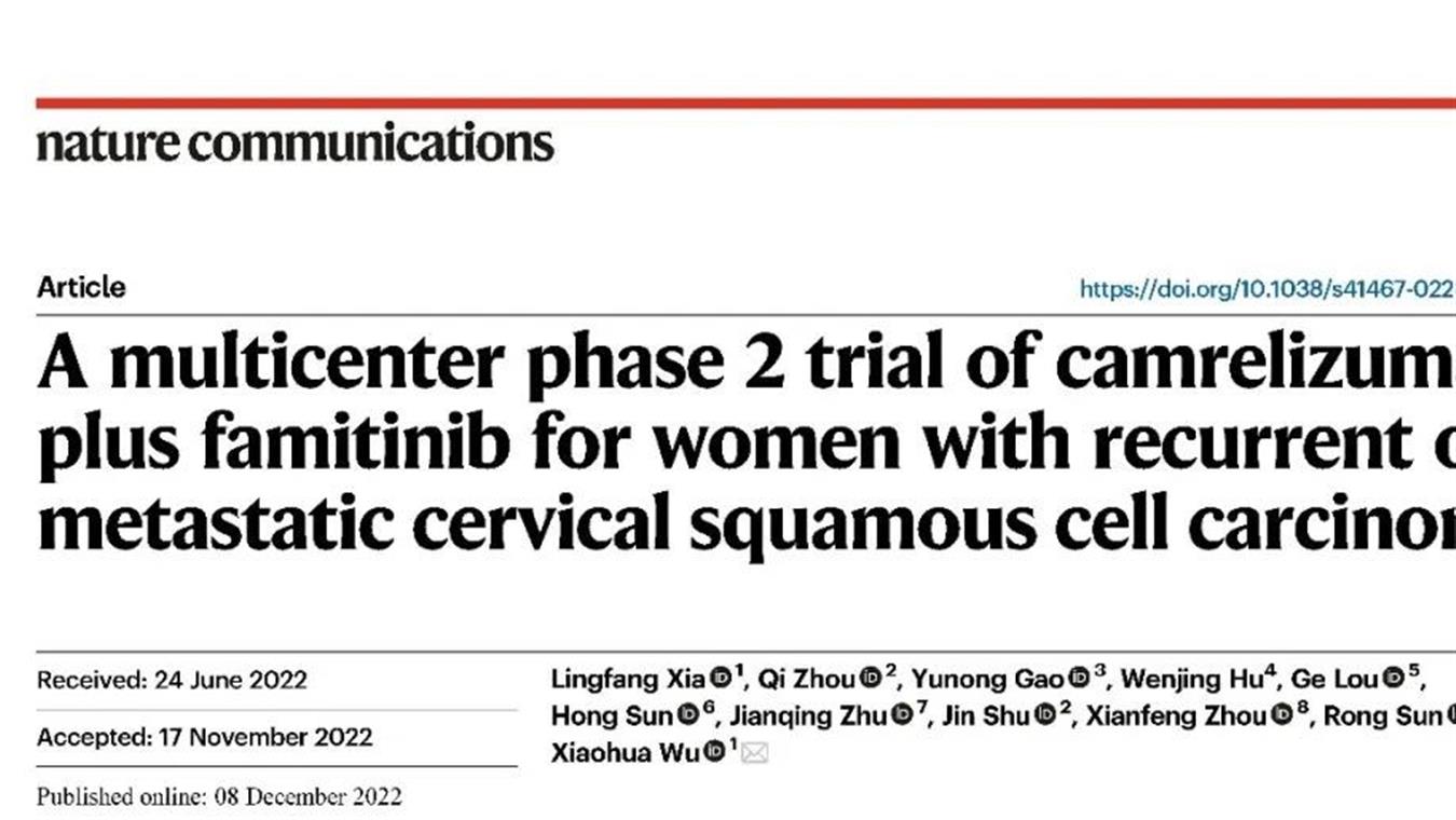 豪门国际创新药卡瑞利珠单抗联合法米替尼用于复发或转移性宫颈癌研究结果荣登JCO